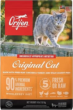 To help maintain freshness we recommend sealing the bag tightly and storing it in a cool dry location. ORIJEN Original Cat diet is made with fresh or raw 1 free-run 2 chicken and turkey and wild-caught fish. By providing more calories from protein and fat and fewer from carbohydrates ORIJEN Cat Kitten distributes calories to mirror the natural feline diet reducing the risk of obesity and diabetes.